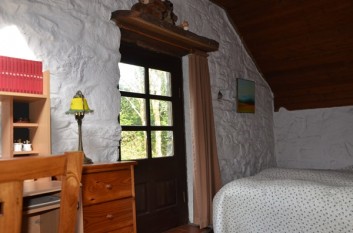 This charming, rustically restored,104m² stonebuilt cottage is situated on a quiet rural road on the edge of the Burren region, within easy reach of the coast at Kinvara. Built circa 1900 as a barn, it was converted to a residence in the late 1970’s. The restoration features natural stone, beamed ceilings and numerous individual, hand crafted finishes. The kitchen/diner includes a centrally located wood burning stove which also heats hot water, or you could use the gas central heating. The two upstairs bedrooms are accessed by a choice of two stairways. Both are narrow and quite steep. People with mobility issues may find these difficult. One bedroom has a balcony with external stairs. The property is situated in a small rural cluster, so there are neighbours nearby, but not overlooking. The house is ‘slightly attached’ as the rear entrance porch touches onto the gable end of the next door house. The mature, landscaped gardens have been planted with a fine selection of shrubs, bushes, trees and flowers. Site size is circa 0.25 acres. Property comprises (all dimensions in metres and approximate)